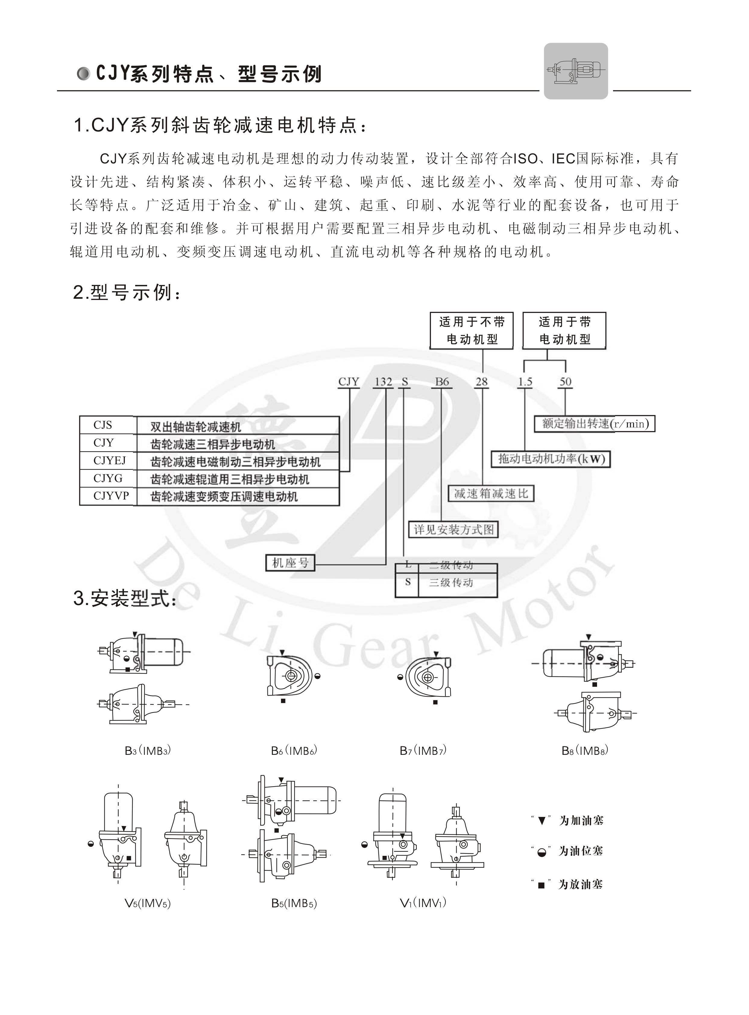 CJY系列斜齒輪減速電機簡介:CJY系列斜齒輪減速電機產品符合ISO、IEC國際標準,設計先進、結構緊湊、體積小、使用方便、噪聲小、效率高、使用可靠、等等特點。使用該產品同時客戶可以根據自